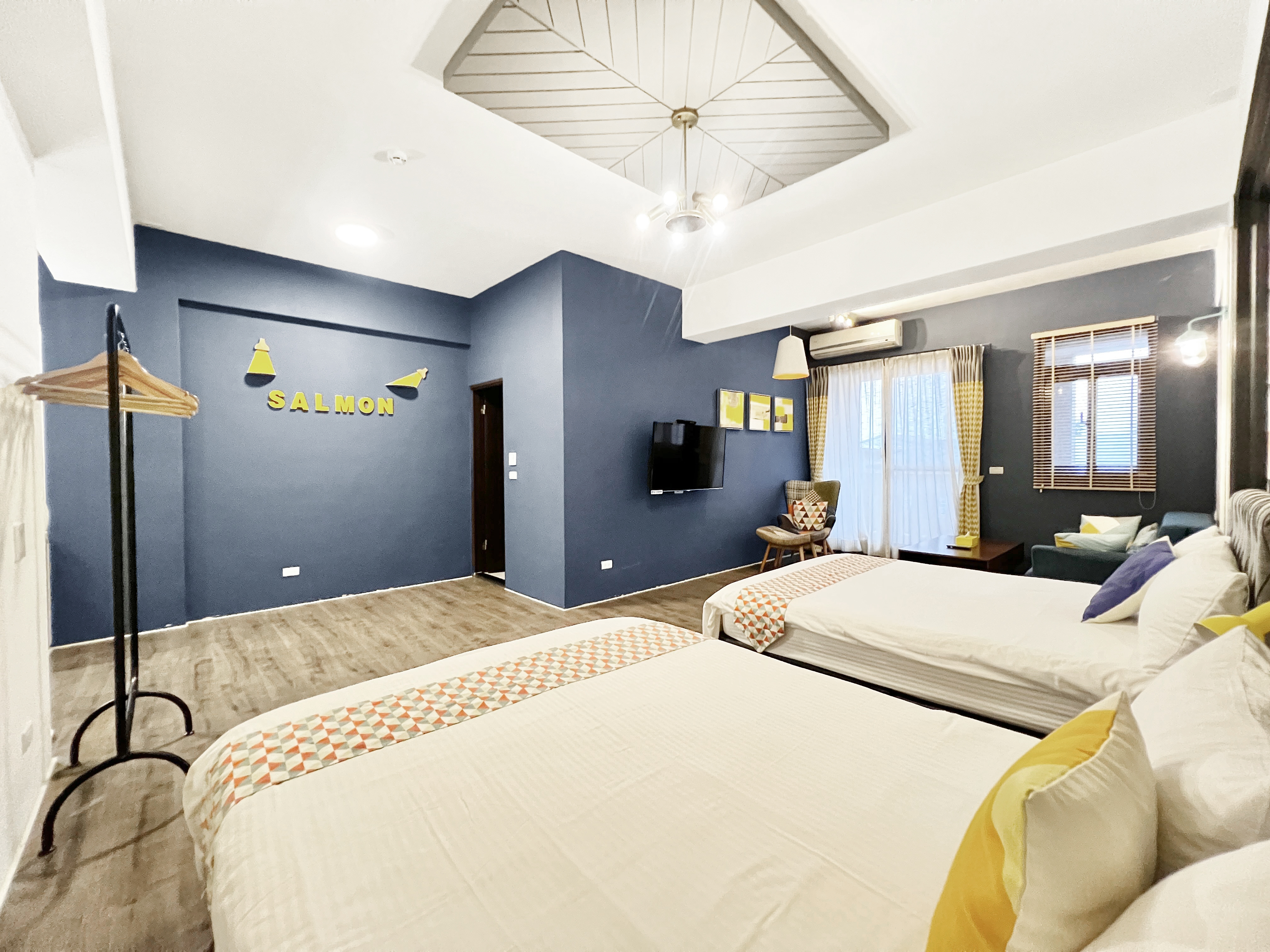 位於花蓮市寧靜社區的鮭魚歸魚,本棟共有5層樓,一樓有客廳可以和家人朋友一起看電視聊天玩玩桌遊,民宿共有5間不同主題的房間可入住16-18人,希望提供一個溫馨且不受拘束的住所,讓每一位來到花蓮的朋友或是旅人們感受到回家的溫馨。