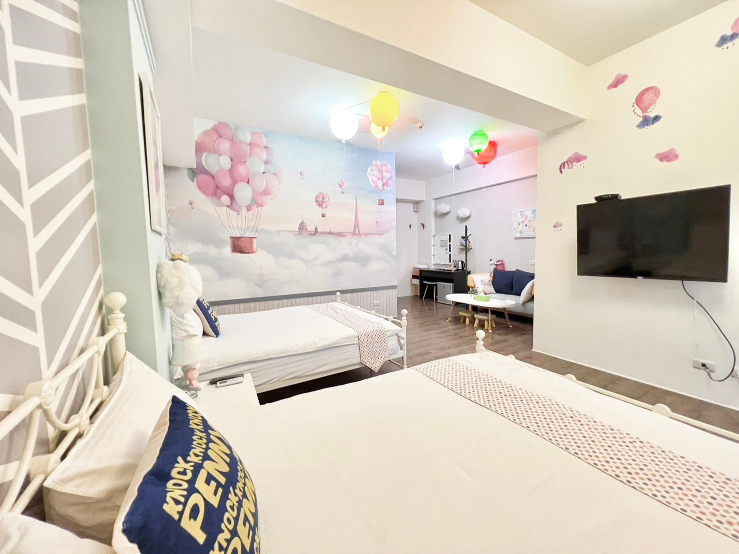 灰色森林 x 夢幻城堡的氣球高飛,每顆繽紛的氣球都代表著童年的夢想,帶領著旅客們進入天真、無憂無慮的世界,擁有單純美好的氛圍,使入住的旅客們感到額外的輕鬆。